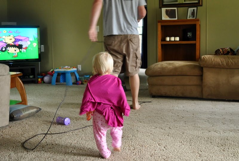 But when she isn't being sweet, she is BAD. I thought that things would be easy until we got closer to two years old, but no. The ones are certainly not always wonderful. She throws food off of her tray onto the floor. She empties drawers and cabinets before I even know what is going on. She rips my glasses off of my face and she hits and scratches. She pulls the dog's ears and she picks the cat up by her tail. Thankfully she only acts this way when she is tired and there is an easy fix to that problem!